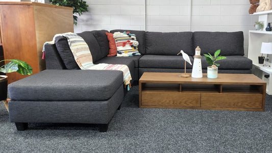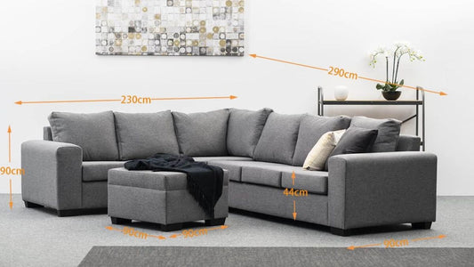 Kinsey Fabric Corner Sofa with Storage Ottoman (NZ Made)