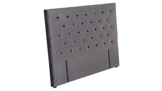 Efe Buttoned Headboard- Stone Grey Velvet