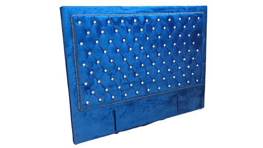 Ernust Buttoned Headboard- Navy Blue Velvet with Crystals
