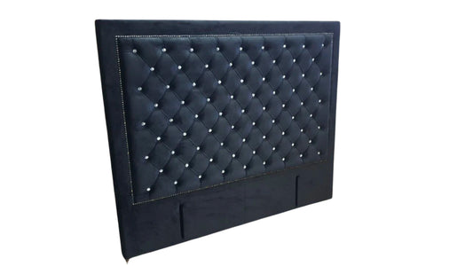 Ernust Buttoned Headboard- Black Velvet with Crystals