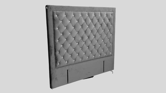 Ernust Buttoned Headboard- Dark Grey Velvet with Crystals