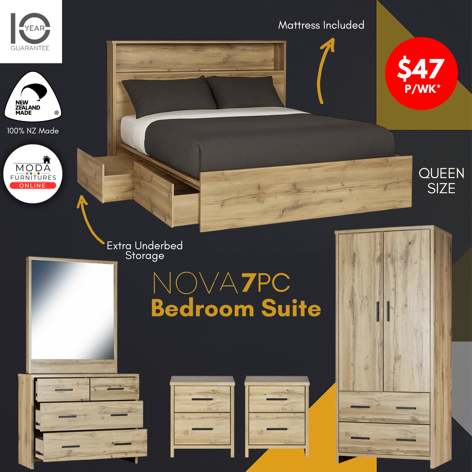 π₯ Modern Charm Meets Smart Storage β Introducing the NOVA 7PC Bedroom Suite