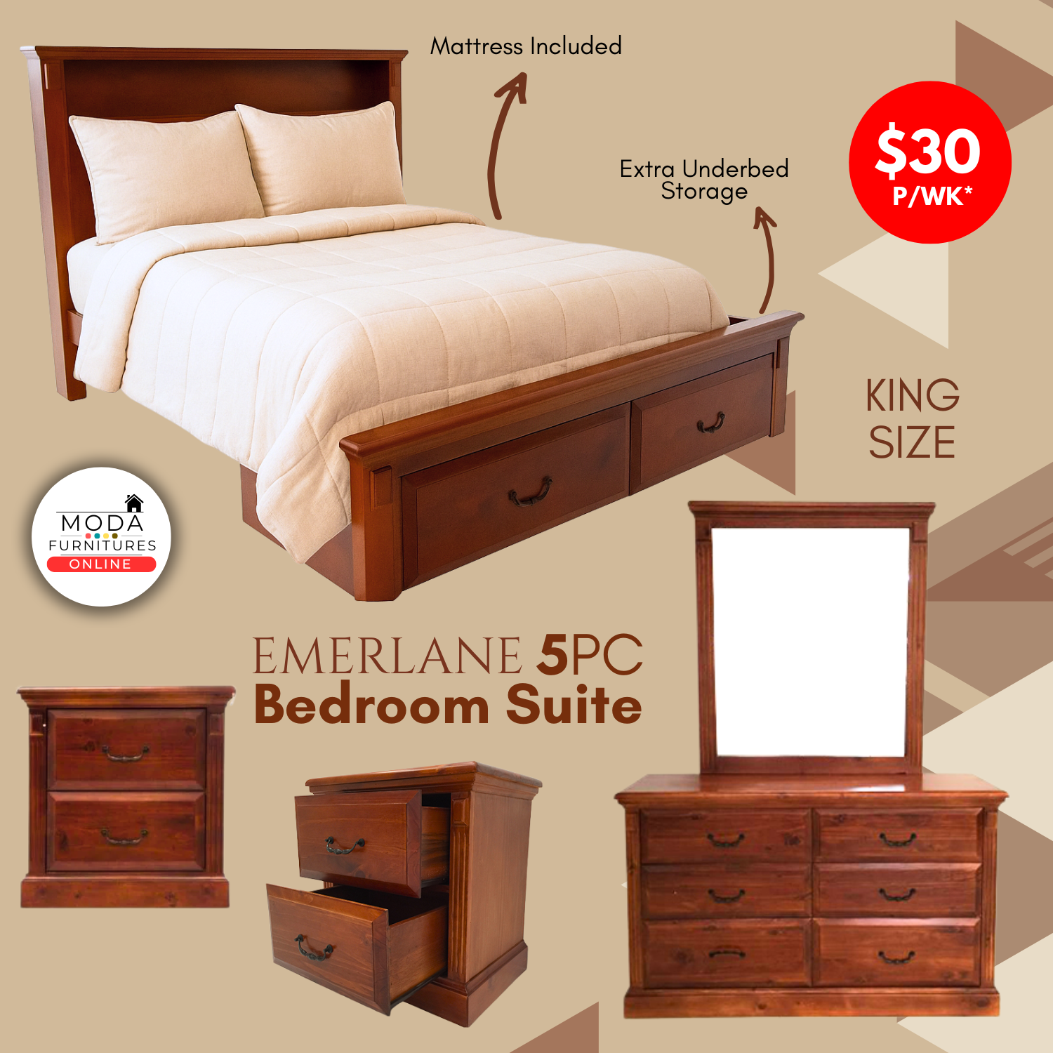 ✨ Timeless Elegance Meets Smart Storage – EMERLANE 5PC Bedroom Suite