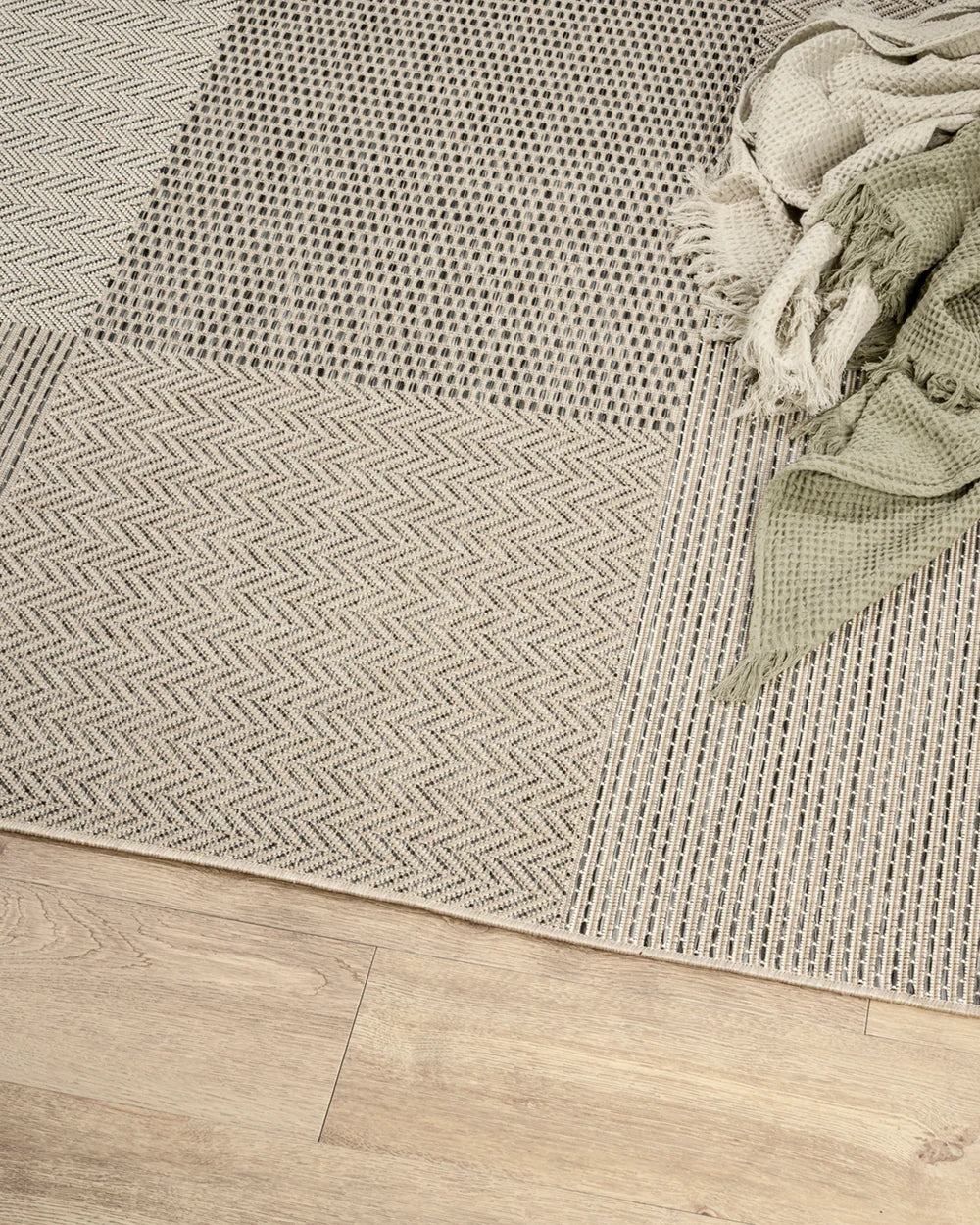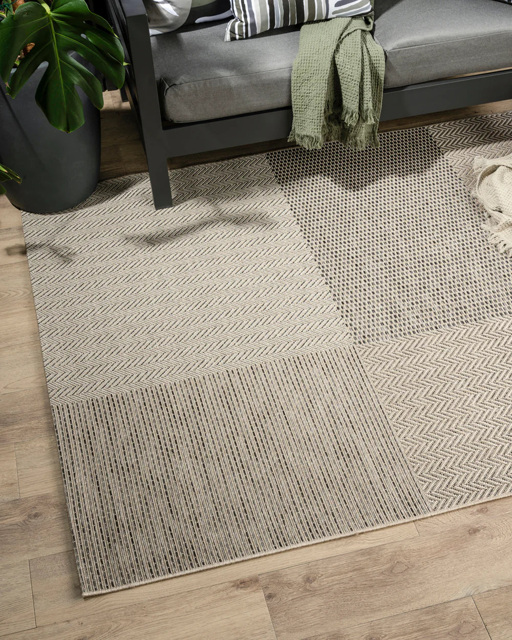 A striking, patchwork-designed rug with subtle variations in texture and colour, the Collingwood is an easy and durable addition to any space. Suitable for either in or outdoor use.