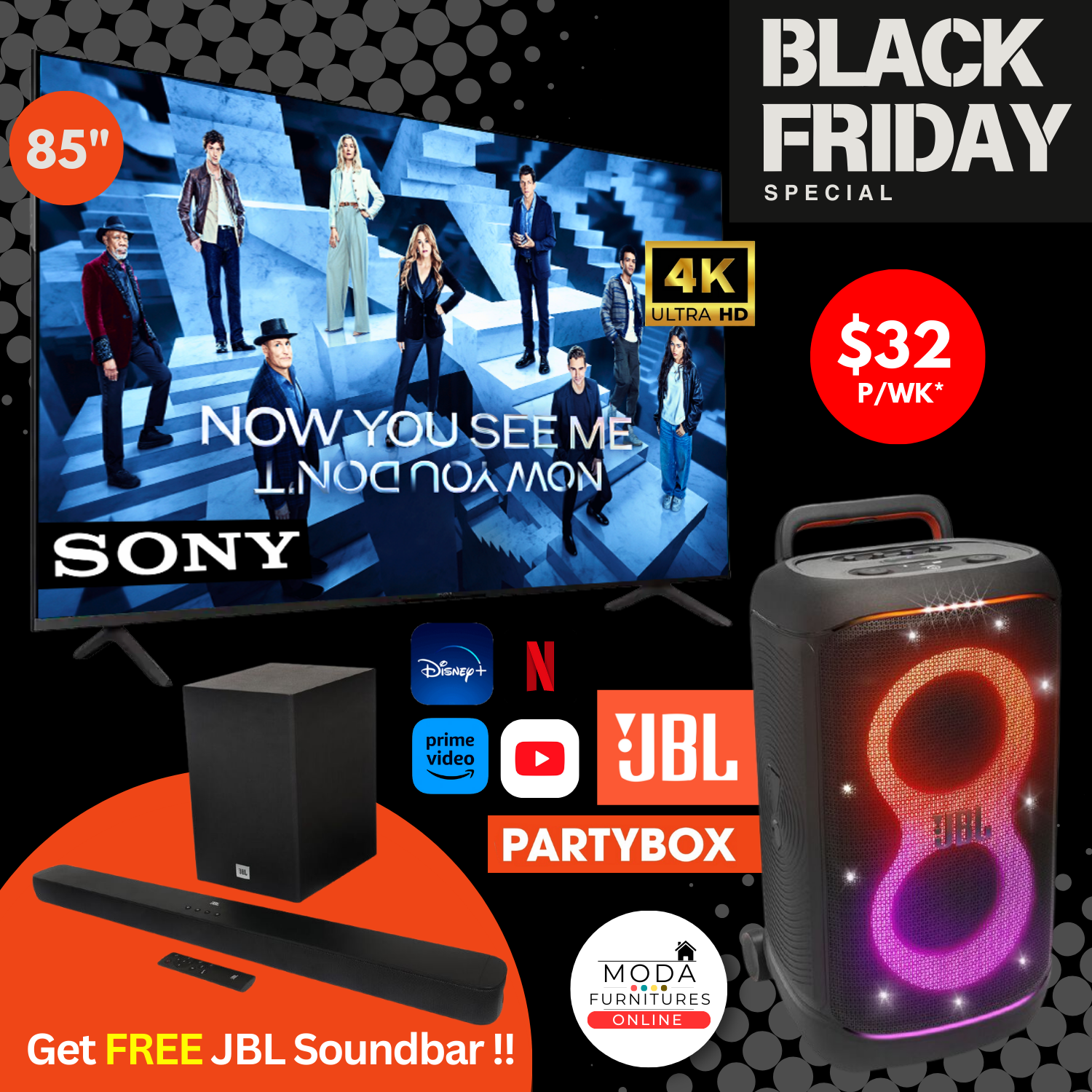 π FREE JBL Soundbar with Subwoofer
