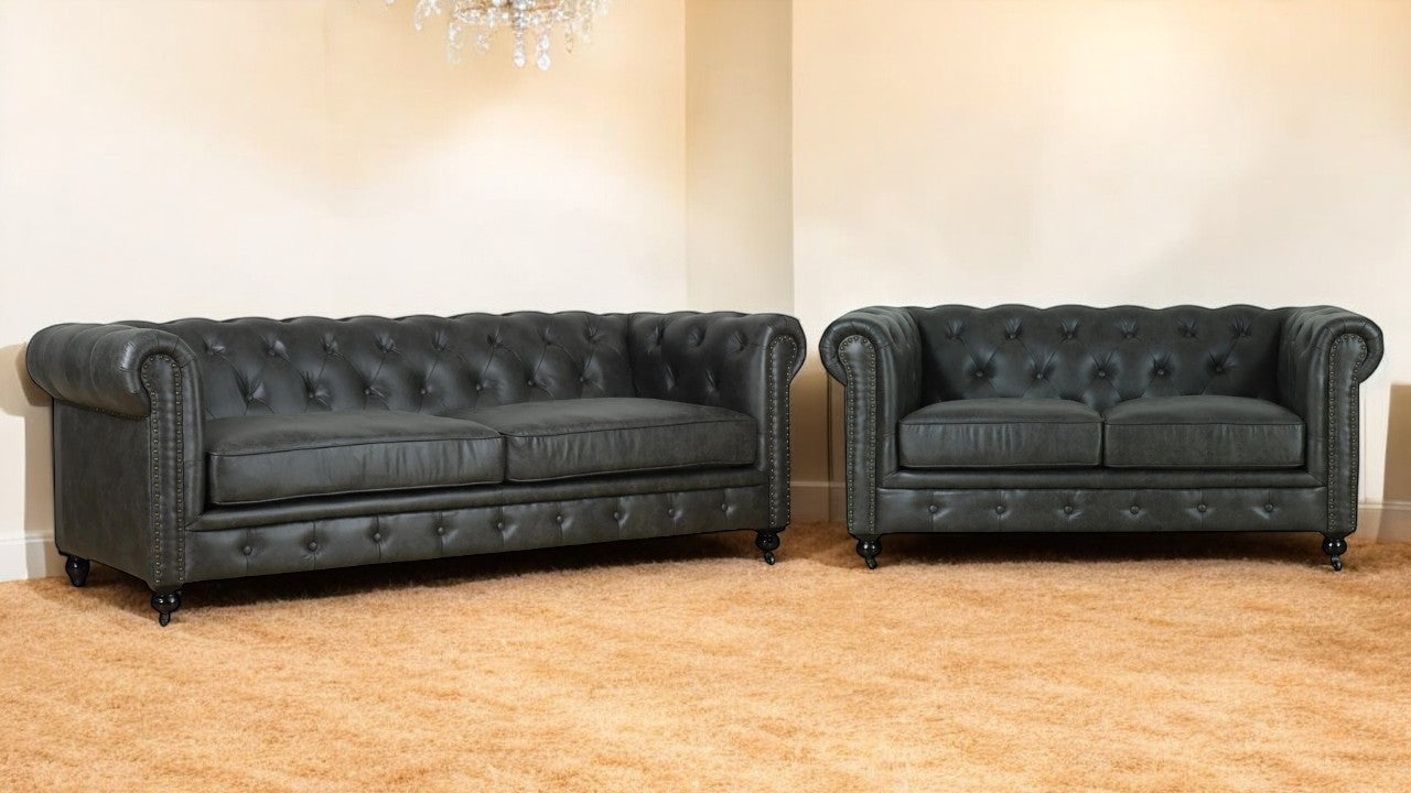 Monarch Chesterfield Leather Sofa (Charcoal)